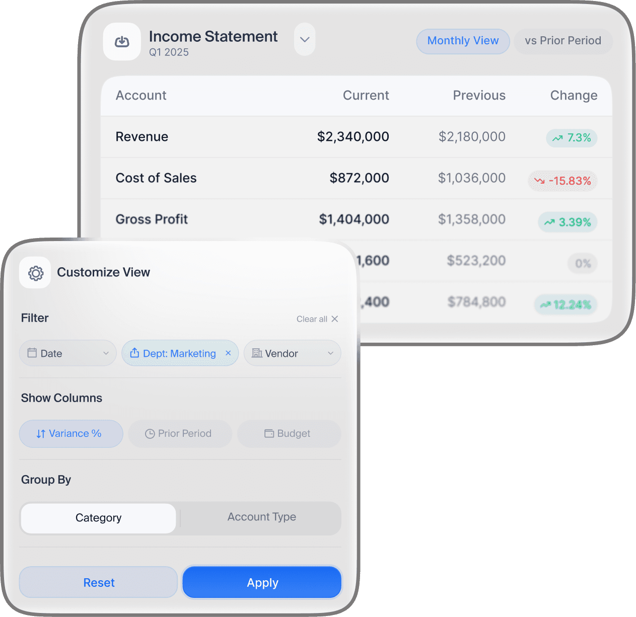Build and customize reports in real time, with the flexibility to match how your business actually runs.
