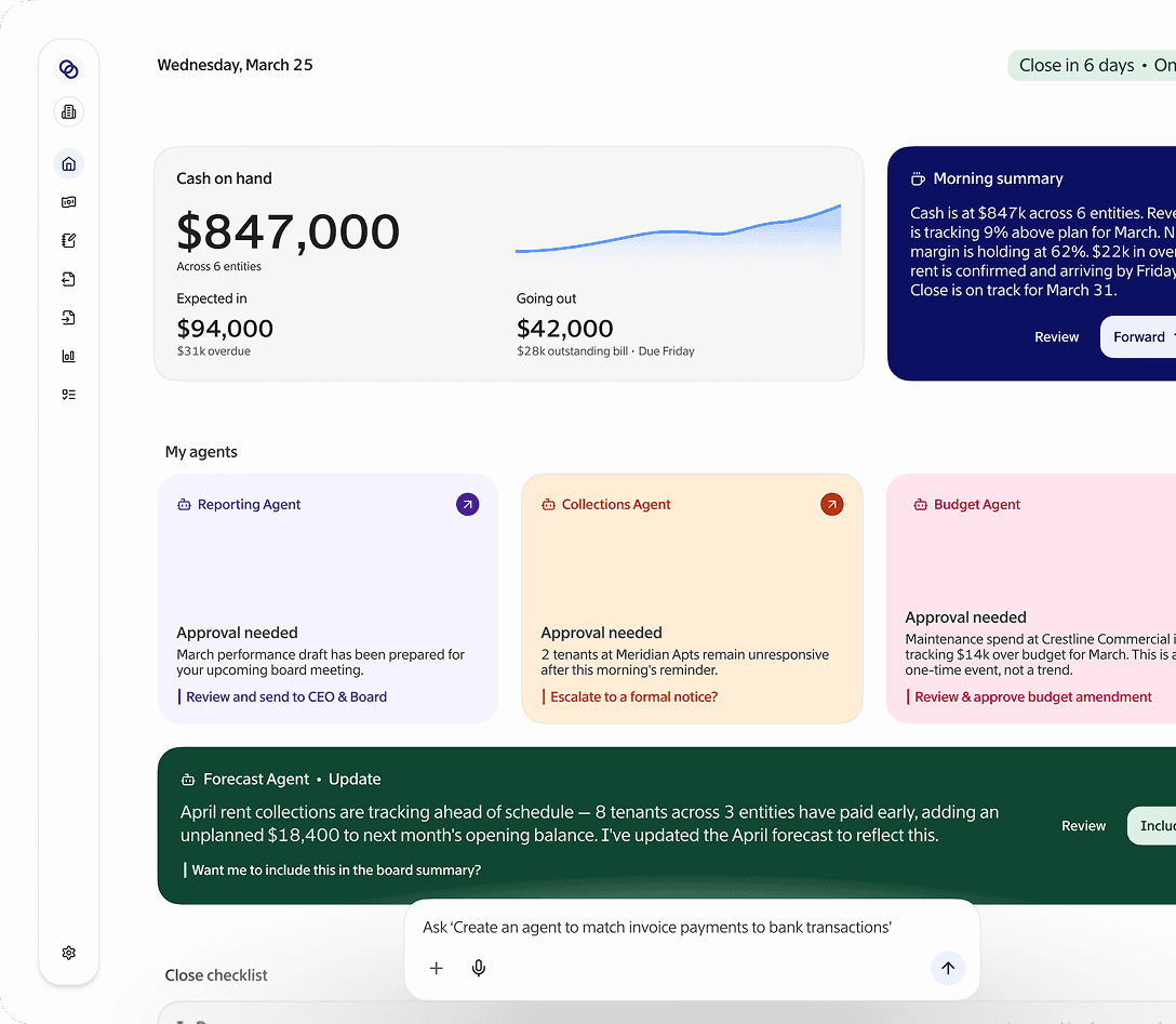 Flow is built to fit around your close process, not replace it. Your chart of accounts, entity structure, and workflows stay intact. The AI agents handle the manual steps inside that process — categorization, matching, reconciliation — so your team does less, not differently.