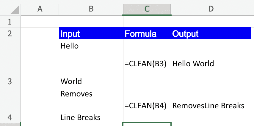 Removing non-printable characters: As mentioned before, the CLEAN formula can be used to remove non-printable characters from text, such as line breaks, carriage returns, and tab characters. This is useful when dealing with user input.