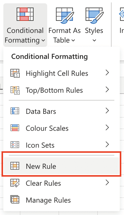 Step 3: Select "New Rule" from the dropdown menu. In the "New Formatting Rule" dialog box, select "Highlight Cell Rules" and “Less than...”