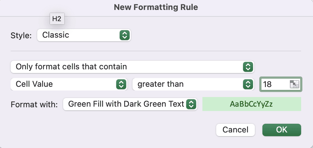 Step 5: Enter the criteria for the formatting rule in the dialog box that appears. For example, if you selected "Greater Than", you would enter the threshold value for the cells that you want to highlight.