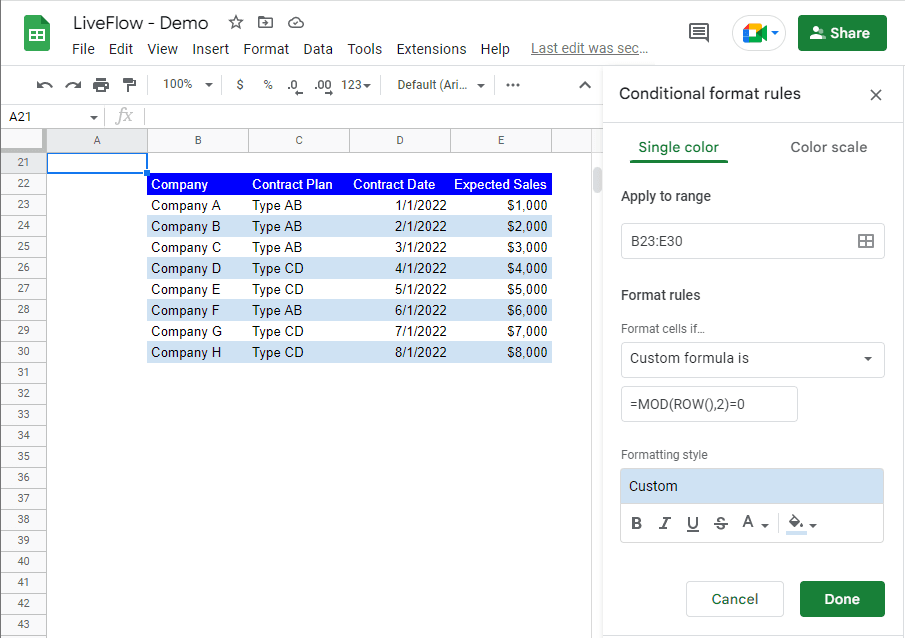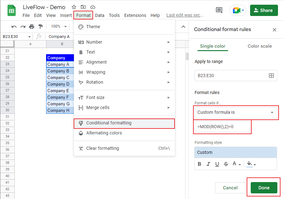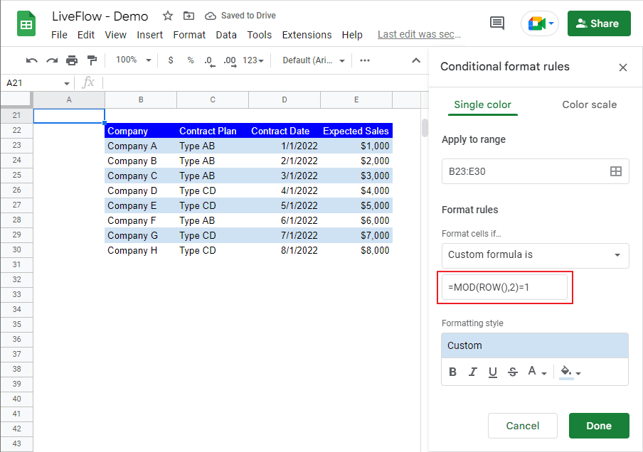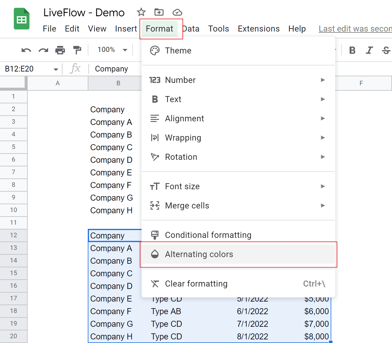 How to Alternate Row Colors in Google Sheets